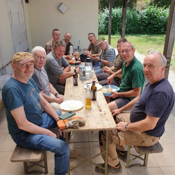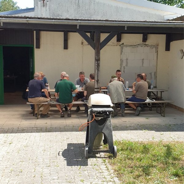 Beim 39 Arbeitseinsatz am Sa. 05.07.2025 von 09-12 Uhr konnte Timm Lochmann als Bauleiter insgesamt 10 Mitglieder begrüßen. An dem Tag wurden einige Dachrinnen/Rohre verlegt und zudem mit der Entfernung der größeren Gesteinsbrocken im Bereich der Schießbahn Keiler/Hasen begonnen. Auch ohne den KJM Th. Maier liefen die Arbeiten gut von der Hand und pünktlich um 12:00 Uhr wurde das Abschlussessen in Form von Steaks und Bratwurst serviert und schon fast ein guter Brauch, gab es von Nina Herzberg wieder leckere Kuchen als Nachtisch.