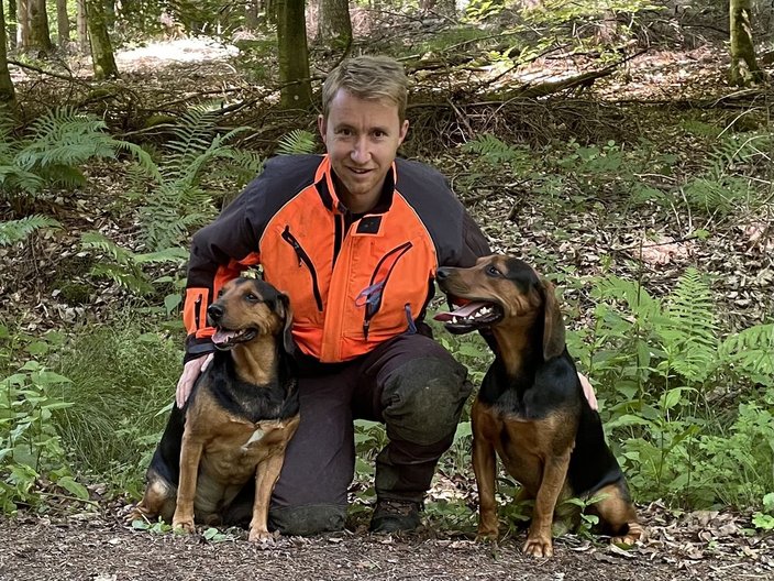 Unser anerkanntes Nachsuchengespann Tino Schlittenhardt mit seiner Tiroler Bracke Albert (11) hat weitere Verstärkung erhalten. Der 2 jährige Alois wurde nach erfolgreichem Abschluss aller Prüfungen vom Landesjadgverband als weitere Nachsuchenhund anerkannt. Das erweiterte Gespann steht wie bisher der KJV Karlsuhe unter 0151-11525418 jederzeit zur Verfügung.