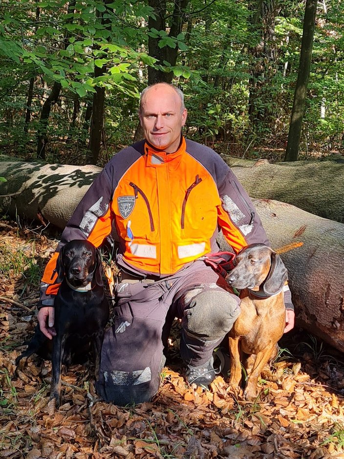 Seit 24.10.2022 steht Sven Sauter aus Walzbachtal der Jägervereinigung und seinen Mitgliedern mit seinem BGS-Hund „Dayo“ als Nachsuchengespann zur Verfügung.