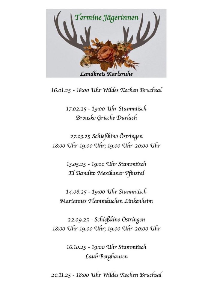Termine für die Jägerinnen 2025